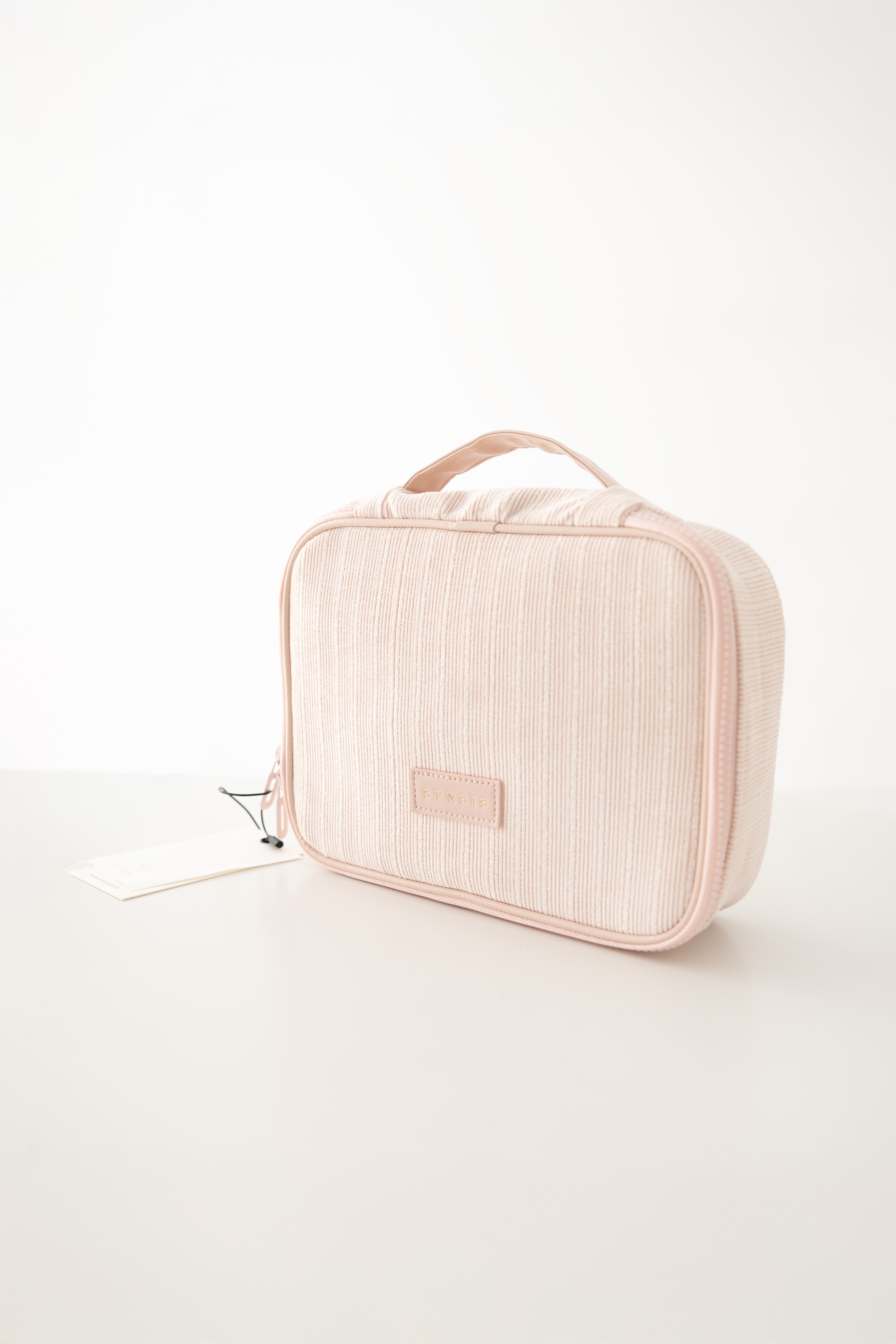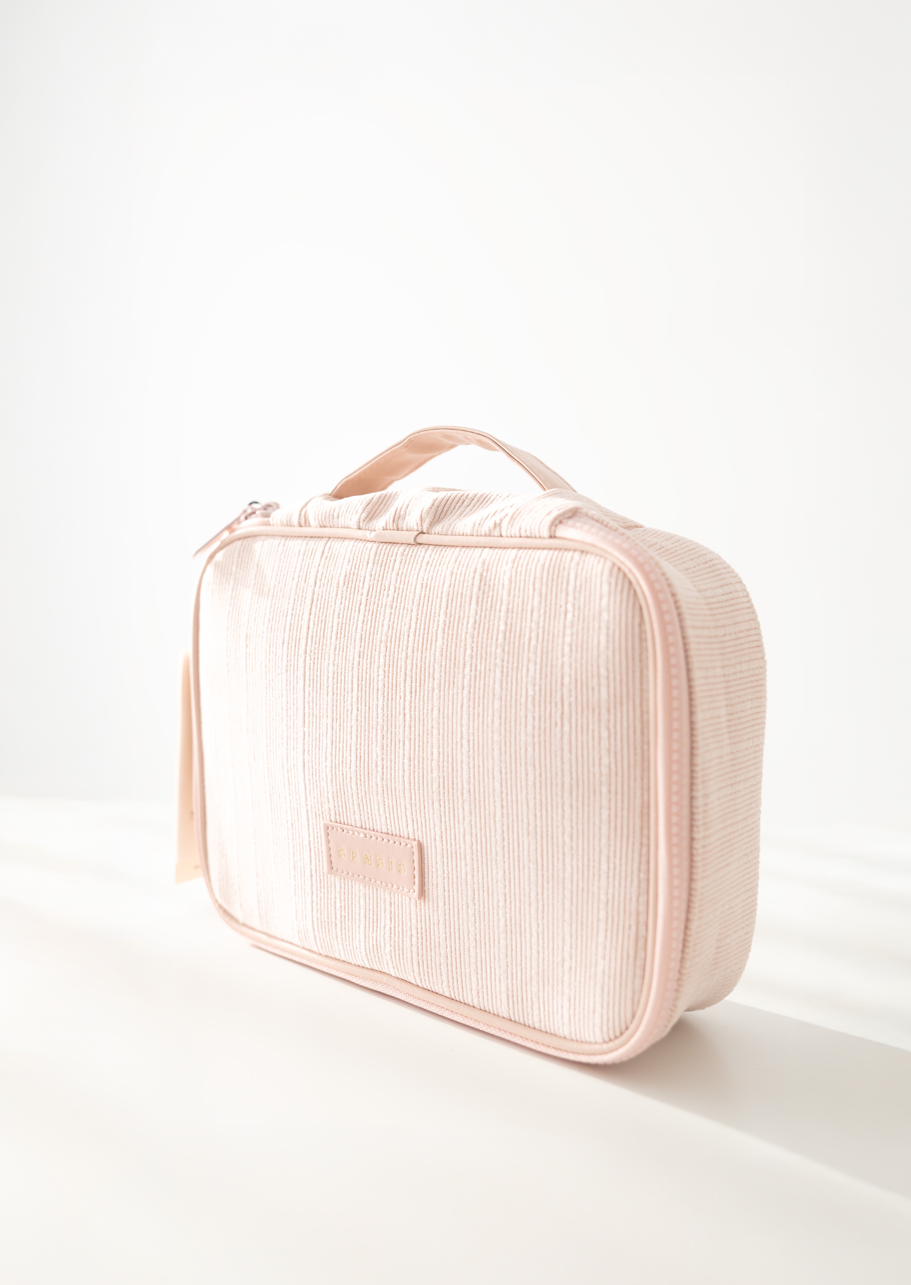 Praktyczna i elegancka kosmetyczka w delikatnym, pudrowym odcieniu, idealna do przechowywania większej ilości kosmetyków i akcesoriów. Prosta forma i subtelna faktura materiału nadają jej nowoczesnego, estetycznego charakteru.