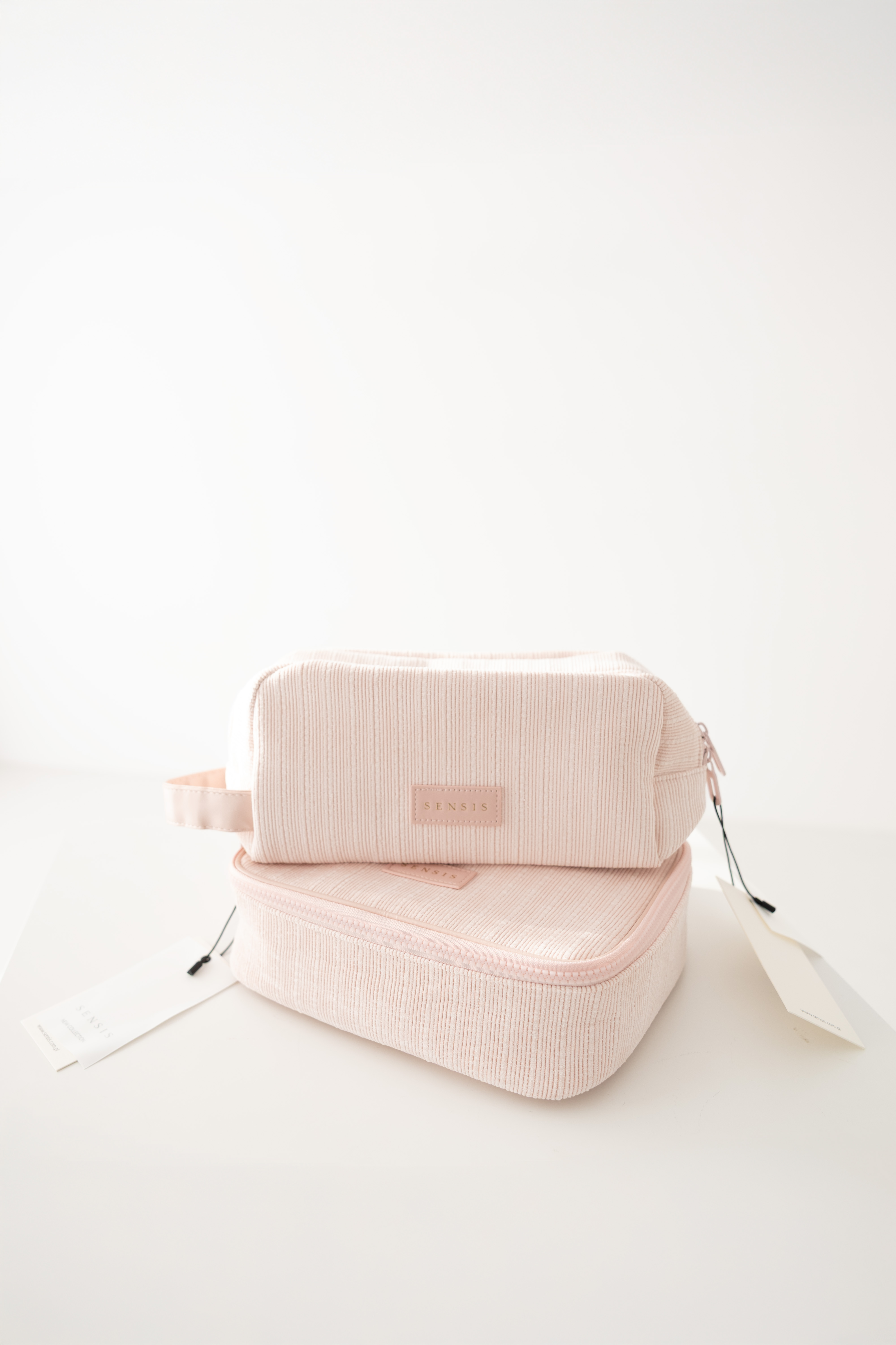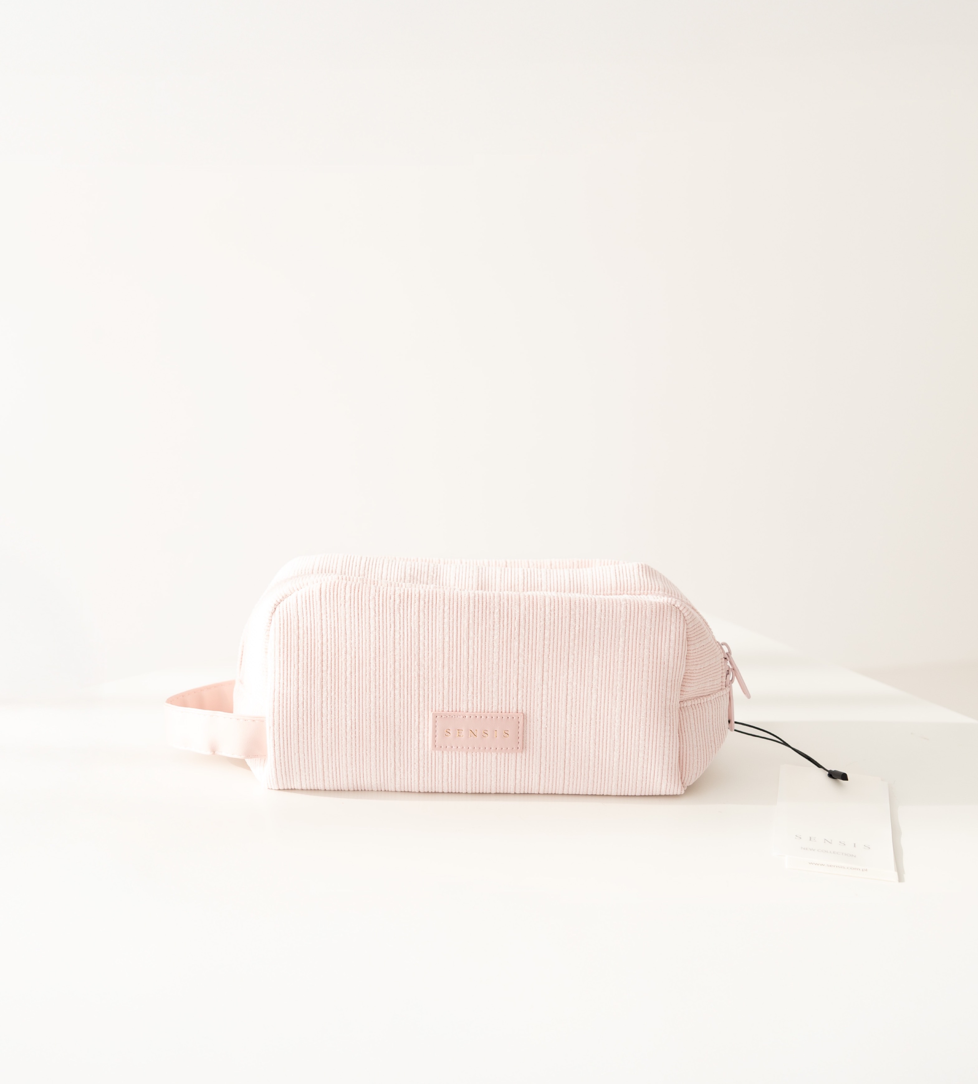 Kompaktowa kosmetyczka w subtelnym, jasnoróżowym odcieniu to idealne rozwiązanie na drobne kosmetyki i akcesoria. Niewielki rozmiar sprawia, że bez problemu zmieści się w torebce lub walizce.