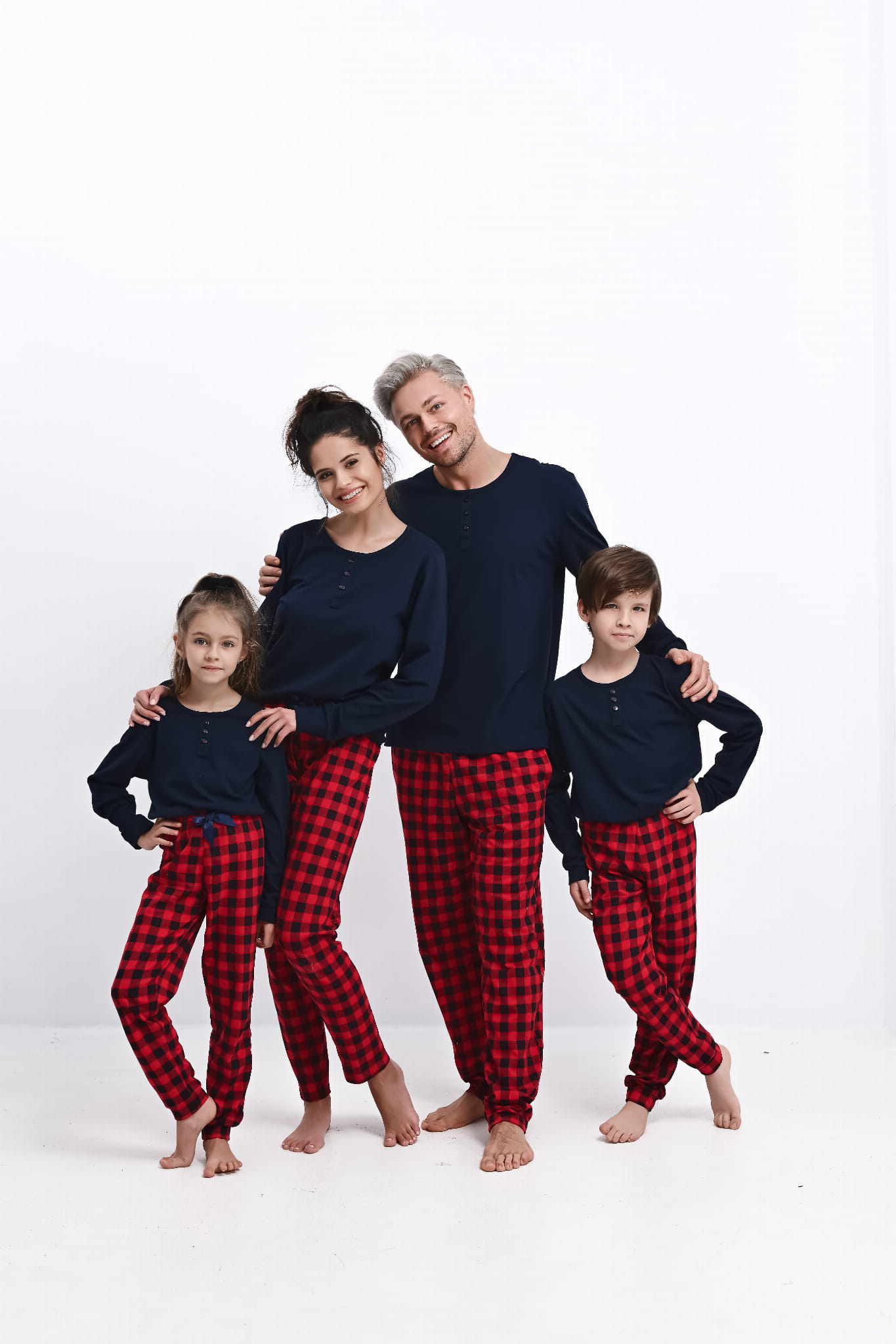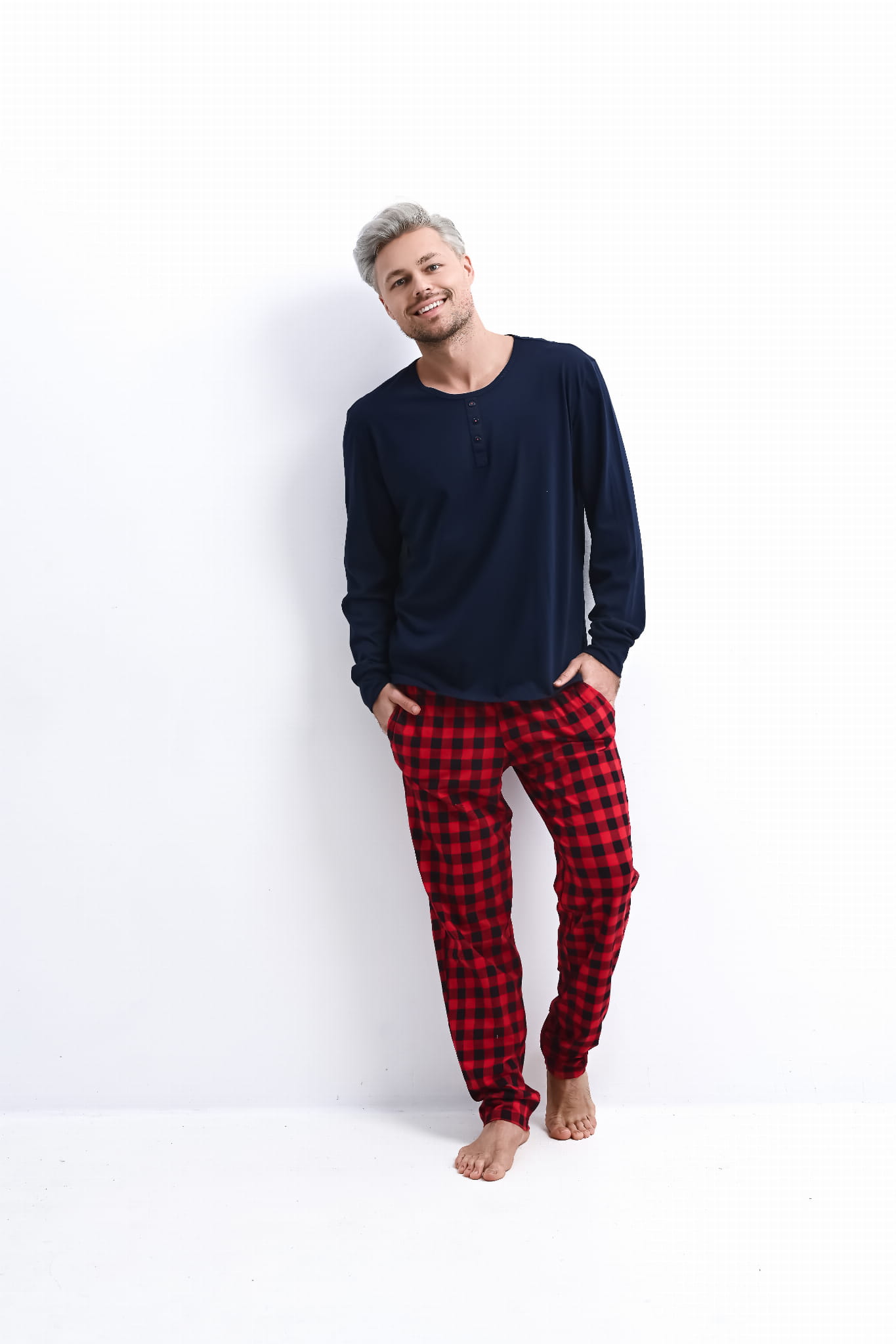 Męska piżama Louie wykonana z wysokiej jakości bawełny. Bluzka z długim rękawem oraz okrągłym dekoltem ozdobiony guzikami. Do kompletu dołączone są długie spodnie z kieszeniami. Całość tworzy spójny i komfortowy zestaw.
